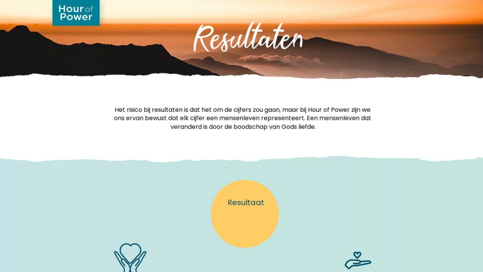 Het risico bij resultaten is dat het om de cijfers zou gaan, maar bij Hour of Power zijn we ons ervan bewust dat elk cijfer een mensenleven representeert. Een mensenleven dat veranderd is door de boodschap van Gods liefde.